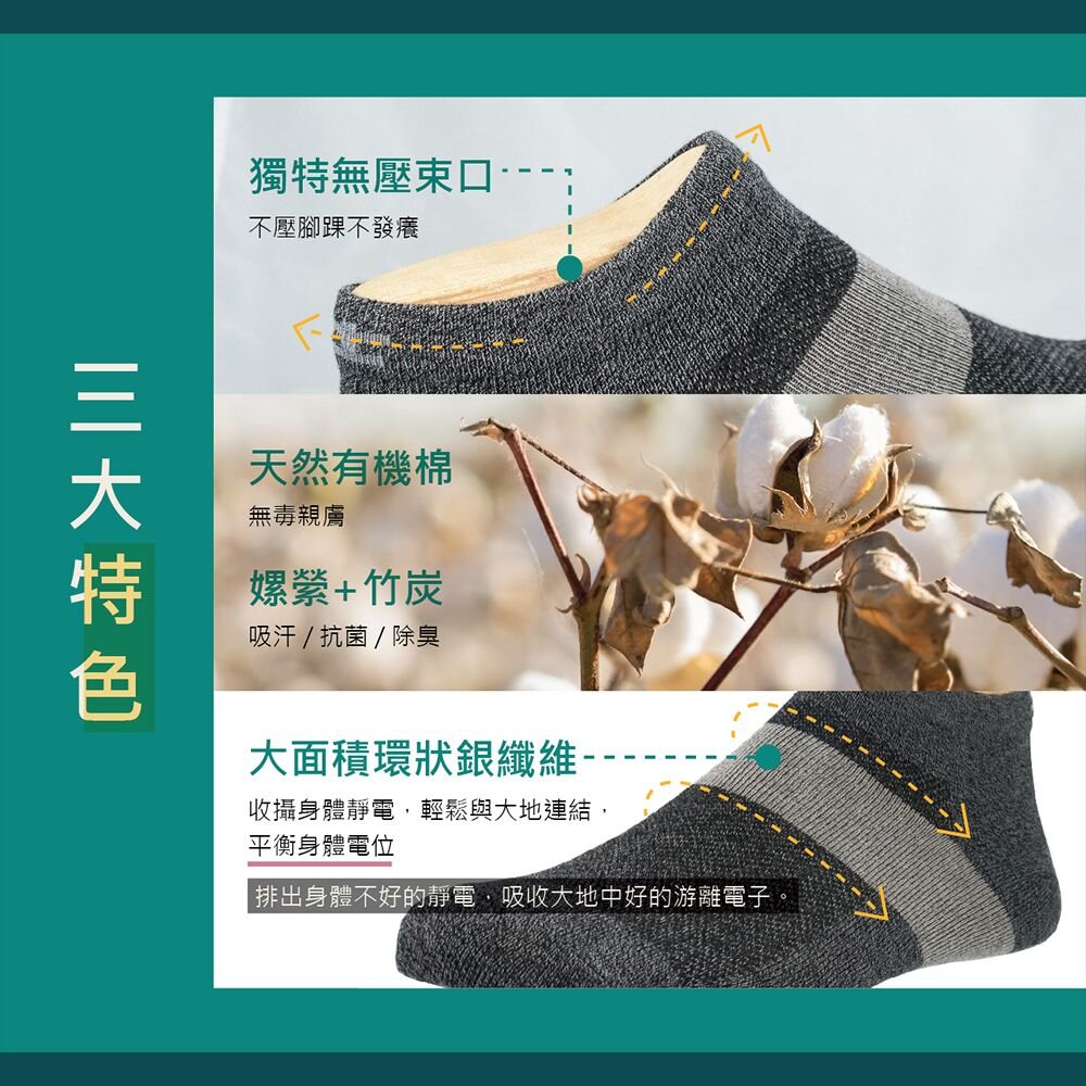 天然有機棉-吸濕-抗菌-竹炭(銀纖排靜電機能襪UAS0001