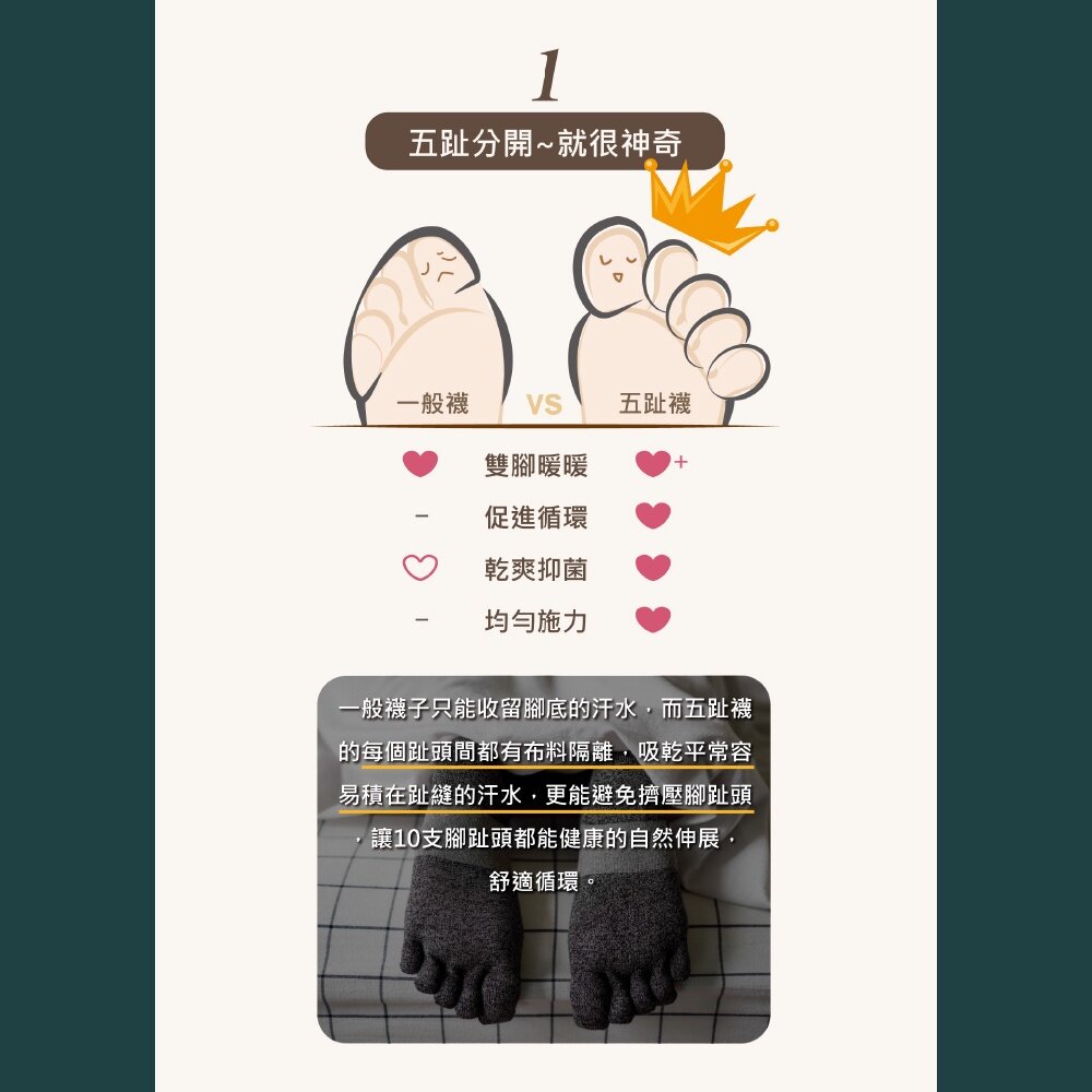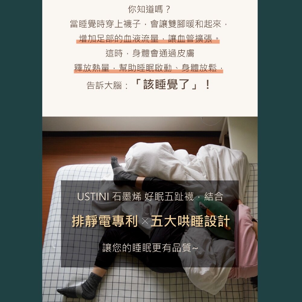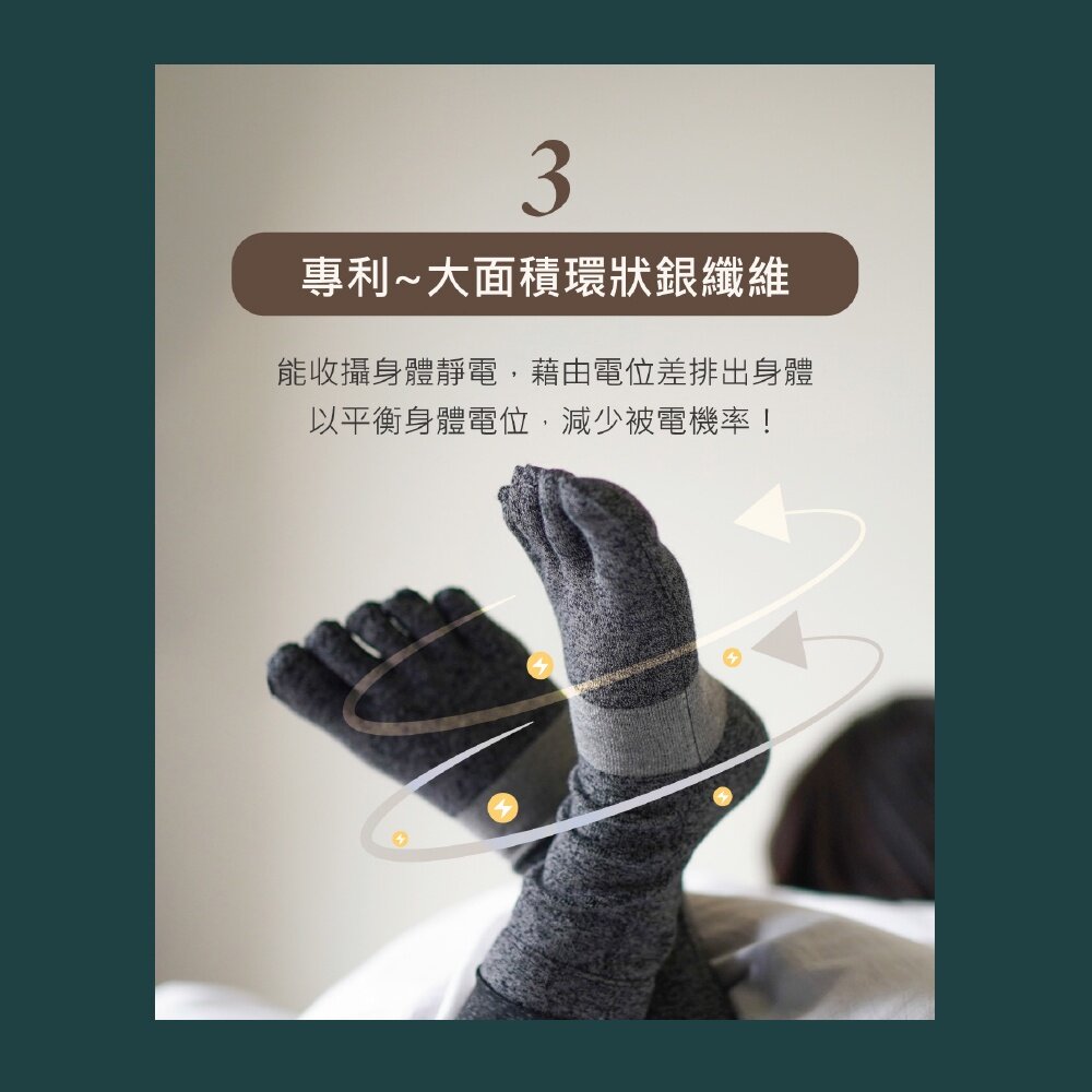 好眠五指襪 排靜電機能襪 大面積環狀銀纖維