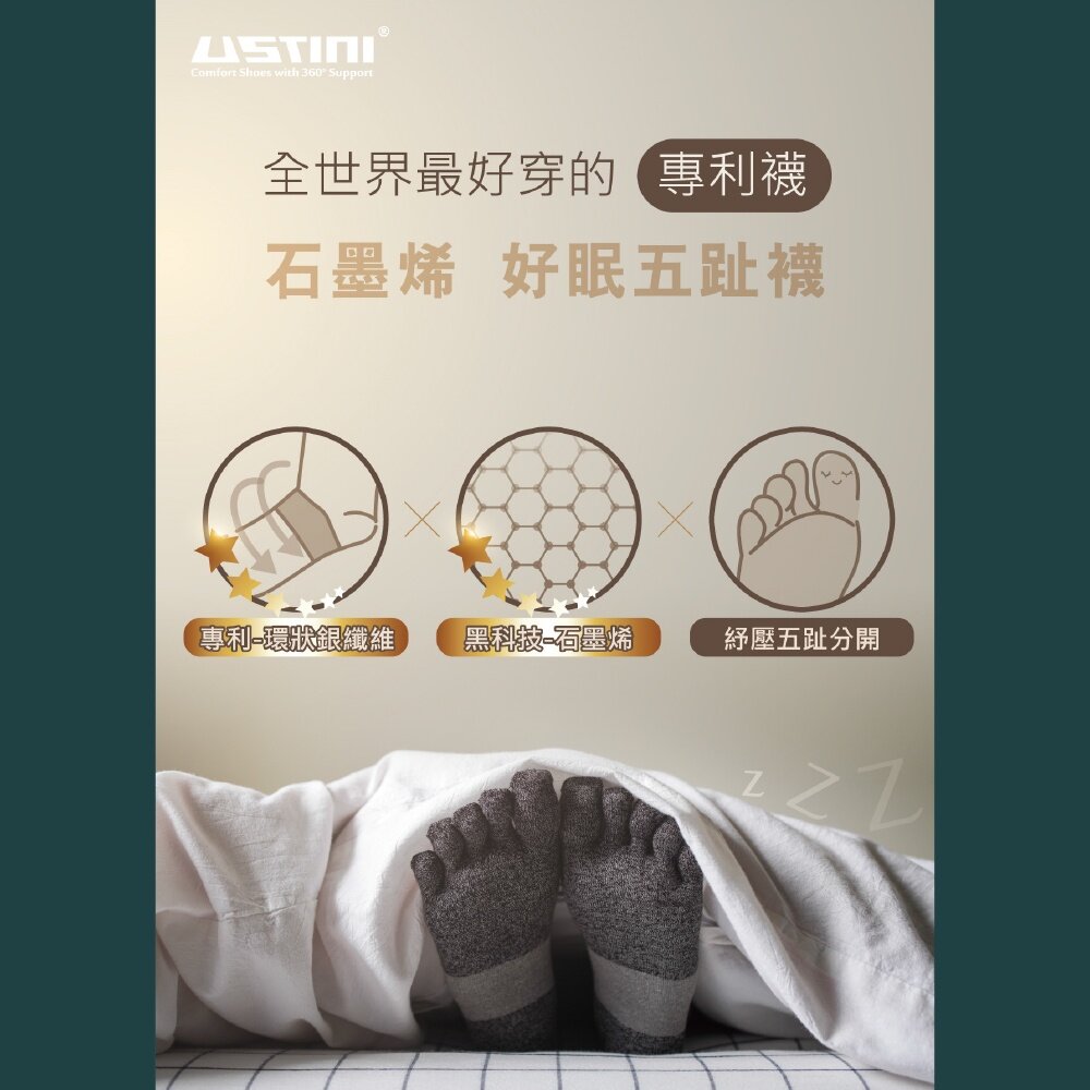 好眠五指襪 排靜電機能襪 大面積環狀銀纖維