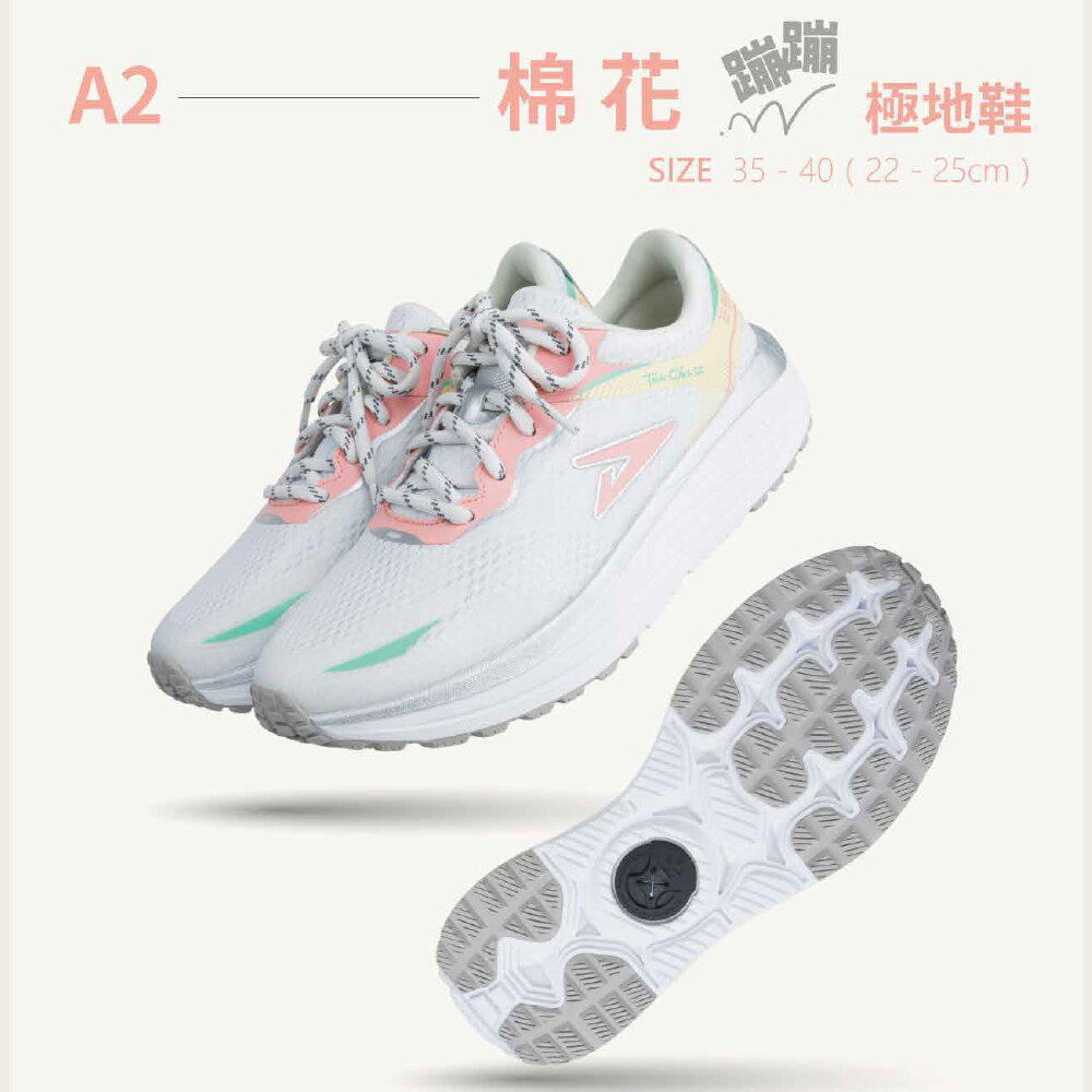 蹦蹦極地鞋 大底運動鞋 輕量省力寬楦 粉灰白 排靜電